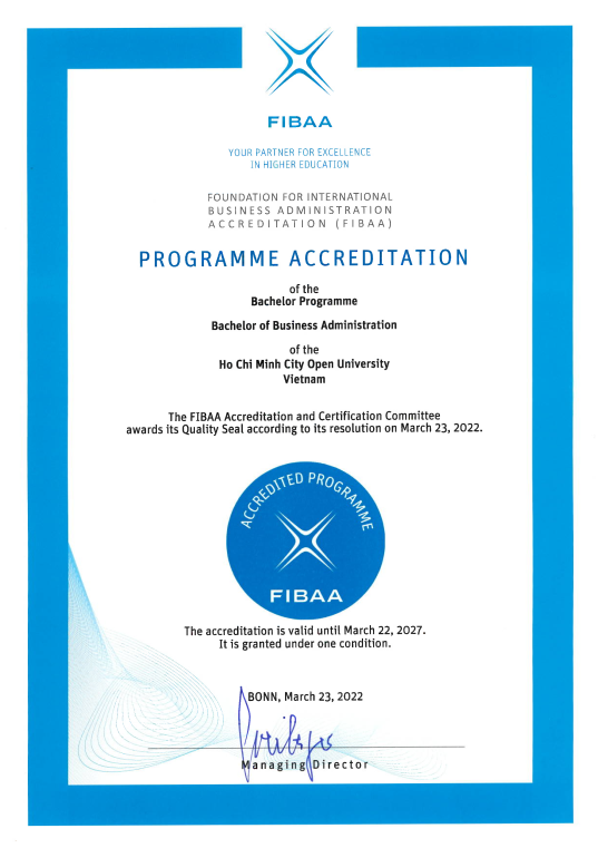 Four Advanced Undergraduate Programs at Ho Chi Minh city Open University Achieve FIBAA Accreditation
